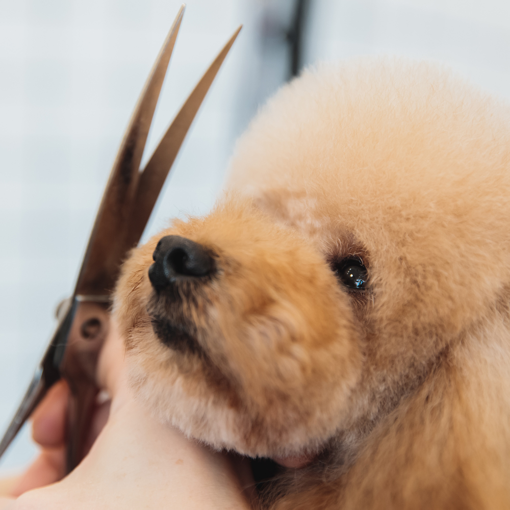 わんちゃんに合わせて、シャンプーやカットを丁寧に行います。わんちゃんがリラックスできるよう心を込めてケアします。